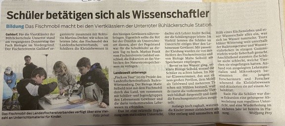 Am 16 Juni war das Fischmobil ebenfalls zu Gast in Gaildorf und mit der 6 Klasse des Ev. Schulzentrums Michelbach wurde ebenfalls nach Kleinstlebewesen im Wasser gesucht um diese anschließend unter dem Mikroskop zu bestimmen. Alle Schüler hatten viel Spaß und entwickelten innerhalb kürzester Zeit einen lebhaften Forscherdrang