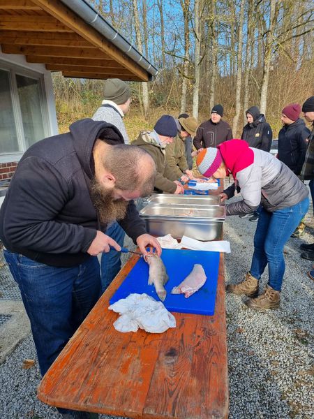 Am 22.11.2025 fand beim Gaildorfer Fischereiverein ein Fischverwertungskurs vom LFVBW statt. Vlado Pajurin vom LFVBW und Markus Frank vom Fischereiverein Gaildorf e.V. luden zur Teilnahme am Vereinsheim in Gaildorf ein. Zahlreiche Teilnehmer bereiteten zusammen mit dem ersten Vorsitzenden des Fischereiverein Gaildorf e.V. verschiedene Spezialitäten zu.